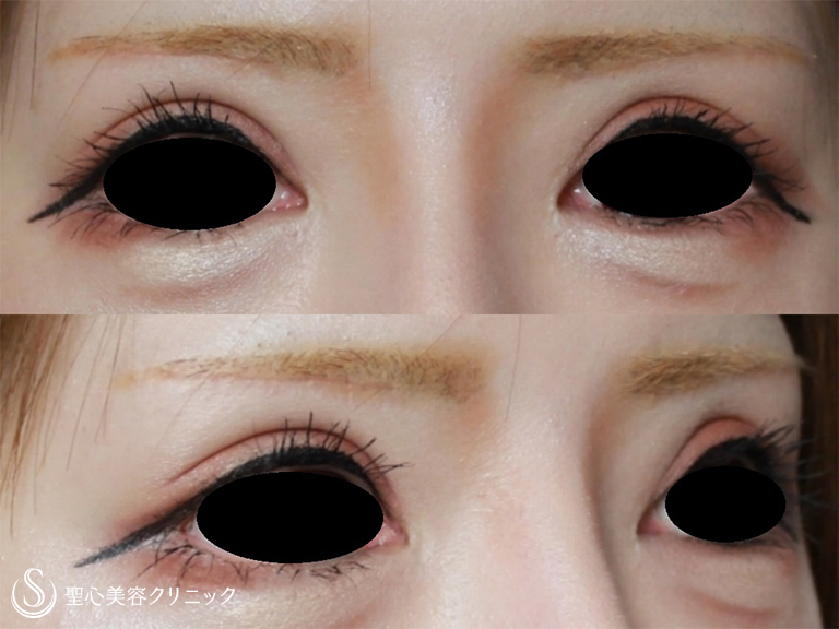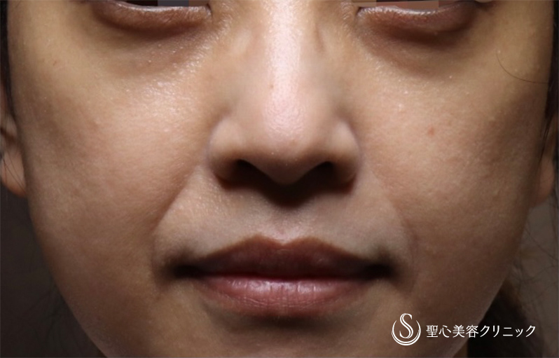 処置後9か月です。目の下のクマの色もずいぶんと改善し、目の下もスッキリしました。もう少し綺麗にされたい、とのことでこの後追加注入をしました。注射でこれだけ改善するものは他にありません。効果も約5年以上でとても好評な治療です。